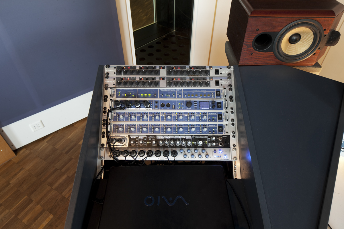 RME Fireface UFX with onboard DSP for 28 channels of signal processing before reaching the workstation.